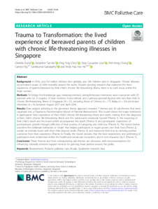 Trauma to transformation: the lived experience of bereaved parents of children with chronic life-threatening illnesses in Singapore