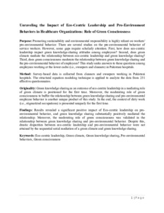 | Uncontrolled Keywords: | eco-centric leadership; green climate; green knowledge sharing; pro-environmental behaviors; green consciousness |