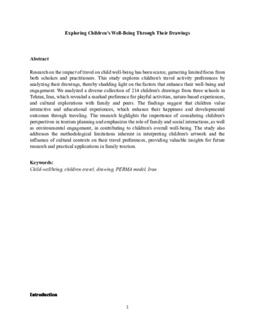 | Uncontrolled Keywords: | child-wellbeing, children travel, drawing, PERMA model, Iran |