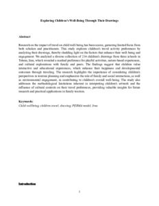Research on the impact of travel on child well-being has been scarce. This study explores children’s travel preferences by analysing their drawings, revealing factors that enhance their well-being and engagement. We analysed 214 drawings from girls aged 8 to 11 from three schools in Tehran, Iran. The drawings illustrated playful activities, nature-based experiences, and cultural explorations with family and peers. Using visual content analysis, the findings suggest that children value interactive, educational travel experiences, enhancing their happiness and developmental growth. The research highlights the importance of considering children’s perspectives in tourism planning and emphasizes family, social interactions, and environmental engagement in contributing to children’s well-being. It also addresses the methodological limitations and cultural influences on their travel preferences.
