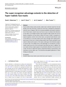 48179 DAVIS_The_Super-Recogniser_Advantage_Extends_To_The_Detection_Of_Hyper-Realistic_Face_Masks_(OA)_2024.pdf - Published Version Available under License Creative Commons Attribution. Download (12MB) | Preview |