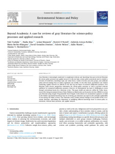 Beyond Academia: a case for reviews of gray literature for science-policy processes and applied research.