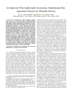 An improved ultra-lightweight anonymous authenticated key agreement protocol for wearable devices.