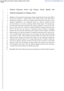 | Uncontrolled Keywords: | urban climate, thermal exposure, environmental justice, urbanization, built environment |