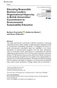 Educating responsible business leaders: organizational hypocrisy in British universities’ commitment to environmental sustainability education