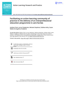Clark, Andrew, Chesterton, Lorna, Stephens, Melanie, Kelly, Siobhan, Walker, Susan and Chadwick, Angelina (2025) Facilitating an action learning community of practice in the delivery of an interprofessional education programme in care homes. Action Learning: Research and Practice. ISSN 1476-7333 (Print), 1476-7341 (Online) (doi:10.1080/14767333.2025.2557916)