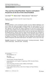 ‘They want you to read their work’: Teachers’ and students’ perspectives on the use of AI for school feedback.