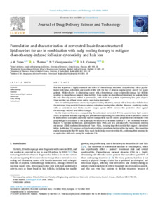 Formulation and characterisation of resveratrol-loaded nanostructured lipid carriers for use in combination with scalp cooling therapy to mitigate chemotherapy-induced follicular cytotoxicity and hair loss.