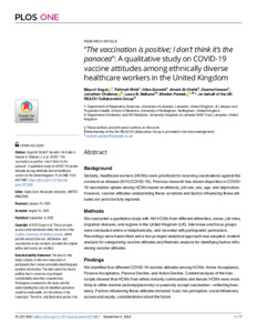 "The vaccination is positive; I don't think it's the panacea": a qualitative study on COVID-19 vaccine attitudes among ethnically diverse healthcare workers in the United Kingdom.