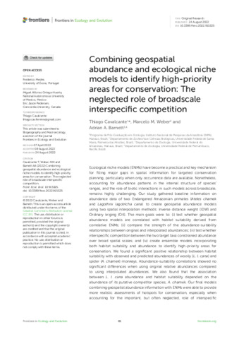 Cavalcante, Thiago, Weber, Marcelo M and Barnett, Adrian A.. (2022) Combining geospatial abundance and ecological niche models to identify high-priority areas for conservation: the neglected role of broadscale interspecific competition. Frontiers in Ecology and Evolution, 10:e915325. ISSN 2296-701X (Online) (doi:10.3389/fevo.2022.915325)
