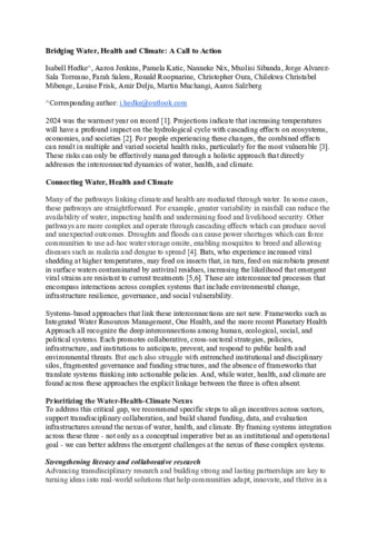 Bridging water, health and climate: a call to action