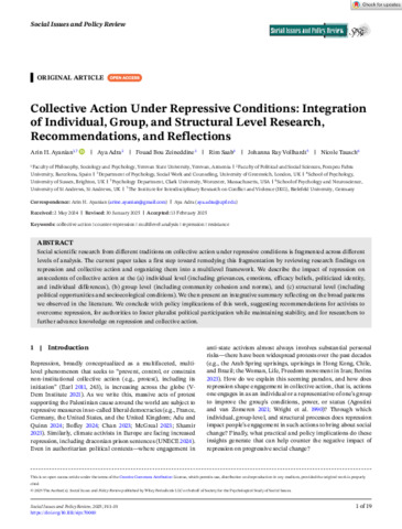 Collective action under repressive conditions: integration of individual, group, and structural level research, recommendations, and reflections