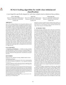 Barzinji, Ala Othman, Ma, Jixin and Ma, Chaoying (2023) SCALA - Scaling algorithm for multi-class imbalanced classification: a novel algorithm specifically designed for multi-class multiple minority imbalanced data problems. In: ICMLT '23: Proceedings of the 2023 8th International Conference on Machine Learning Technologies. Association for Computing Machinery (ACM), New York, pp. 68-73. ISBN 978-1450398329 (doi:10.1145/3589883.3589893)