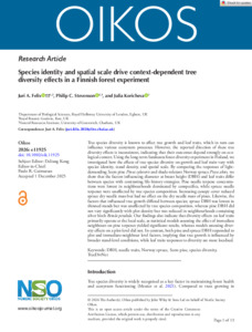 Species identity and spatial scale drive context‑dependent tree diversity effects in a Finnish forest experiment.