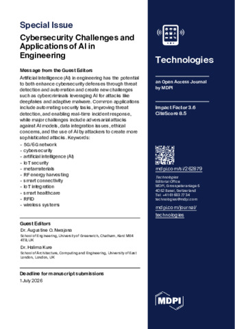 Call for Papers: Technologies MDPI Special Issue – Cybersecurity Challenges and Applications of AI in Engineering.