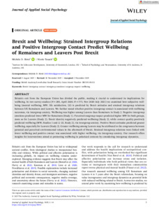 Brexit and wellbeing: strained intergroup relations and positive intergroup contact predict wellbeing of Remainers and Leavers post Brexit.