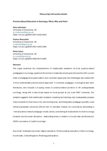 This paper examines the characteristics of traditionally academic vis-à-vis practice-based pedagogies in sociology; questions the former’s widely assumed superiority and the UK’s current state of pedagogical exceptionalism; and considers arguments and challenges associated with a more substantially practice-based approach. It combines pedagogic, sociological and other literatures, and includes a scoping review of practice-based provision in UK undergraduate sociology, along with a case study based on focus groups at one ‘post-1992’ university. Our analysis suggests that traditionally academic teaching and learning may inadequately prepare many students for their future civic and working lives; and that greater pedagogic plurality could enhance graduate outcomes without loss of criticality. Indeed, we conclude by articulating a ‘critical practice-based' pedagogic model, and by considering its implications for both sociology students and the wider discipline – elaborating these in relation to social class and Burawoy’s (2005) conception of ‘public sociology’.