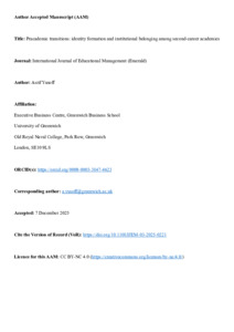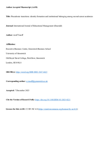 52033 YUSOFF_Pracademic_Transitions_Identity_Formation_And_Institutional_Belonging_(AAM)_2025.pdf - Accepted Version Available under License Creative Commons Attribution Non-commercial. Download (458kB) | Preview |