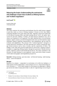 Balancing the books: understanding the motivations and challenges of part-time students as lifelong learners and “resilient negotiators”.
