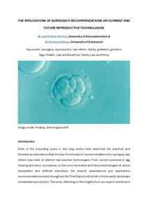 Park-Morton, Charlotte and Adkins, Victoria (2026) The implications of surrogacy recommendations on current and future reproductive technologies. Socio‑Legal Studies Association (SLSA), University of Edinburgh, UK.