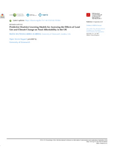 | Uncontrolled Keywords: | agriculture, climate change, CO2 emissions, consumer affordability, United Kingdom (UK), Machine Learning, Sustainable Development Goals (SDGs) |