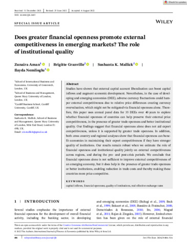 Does greater financial openness promote external competitiveness in emerging markets? The role of institutional quality.
