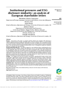 Institutional pressures and ESG disclosure similarity: an analysis of European shareholder letters.