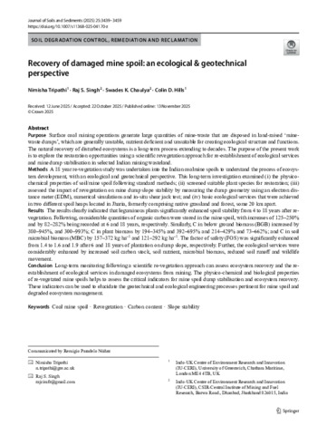 Recovery of damaged mine spoil: an ecological and geotechnical perspective