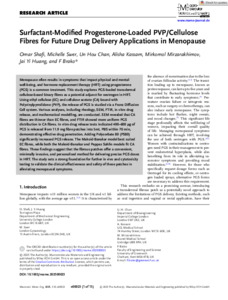 Surfactant‐modified progesterone‐loaded PVP/cellulose fibres for future drug delivery applications in menopause.