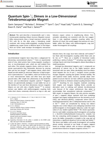 52712 CLARK_Quantum_Spin‐1_2_Dimers_In_A_Low‐Dimensional_Tetrabromocuprate_Magnet_(OA)_2022.pdf - Published Version Available under License Creative Commons Attribution. Download (870kB) | Preview |