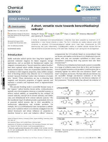 52714 CLARK_A_Short_Versatile_Route_Towards_Benzothiadiazinyl_Radicals_(OA)_2021.pdf - Published Version Available under License Creative Commons Attribution. Download (850kB) | Preview |
