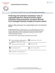 Predicting the hydrolytic breakdown rates of organophosphorus chemical warfare agent simulants using association constants derived from hydrogen bonded complex formation events.