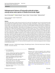 Pathognomonic features of Pasteurella multocida isolates among various avian species in Sharkia Governorate, Egypt.