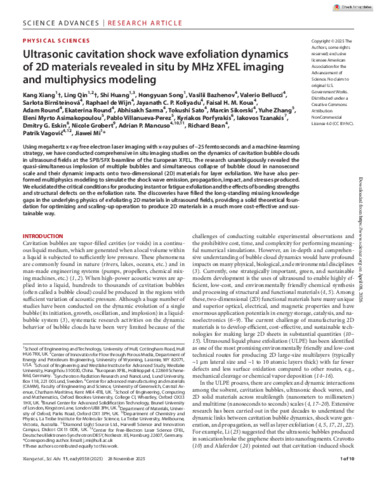 | Uncontrolled Keywords: | Ultrasonic cavitation, shock wave exfoliation dynamics, MHz XFEL imaging, multiphysics modeling |