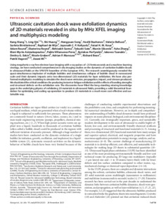 Ultrasonic cavitation shock wave exfoliation dynamics of 2D materials revealed in situ by MHz XFEL imaging and multiphysics modeling.