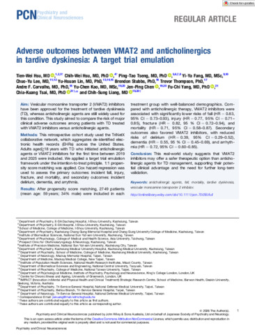 Adverse outcomes between VMAT2 and anticholinergics in tardive dyskinesia: a target trial emulation.