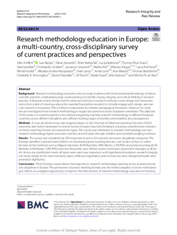 Research methodology education in Europe: a multi-country, cross-disciplinary survey of current practices and perspectives