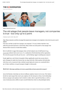 The old adage that people leave managers, not companies is true – but only up to a point.